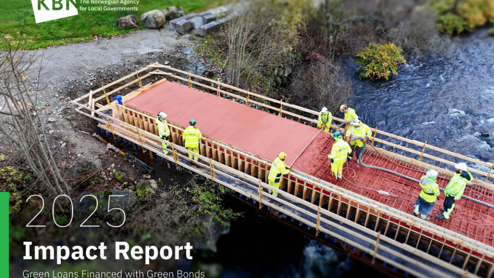 Gjesdal på forsiden av Kommunalbankens Miljøeffektrapport Kommunalbanken publiserte nylig sin miljøeffektrapport for 2025, og på forsiden har de valgt å løfte frem byggingen av Liv Godin-broen.