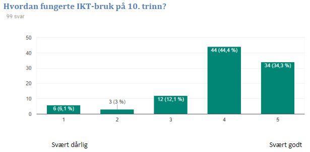 Elevene som gikk ut av 10 trinn i 2018, har svart på en undersøkelse om denne satsingen. De sier at dette har ført til mer læring og høyere motivasjon. De gode mulighetene for samarbeid med andre elever og lærere blir nevnt av flere. Dessuten sier de at enheten og programmene er enkle å bruke.